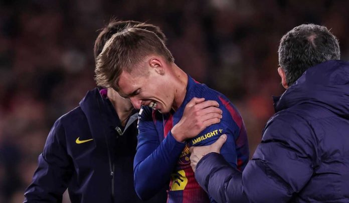 Gilabola.com – Barcelona dipastikan kehilangan Dani Olmo selama satu bulan setelah sang gelandang mengalami dislokasi bahu ketika menghadapi Atletico Madrid, dengan klub memilih penanganan konservatif tanpa operasi, sehingga dia bakal melewatkan empat laga krusial dan diragukan tampil di Piala Super Spanyol.